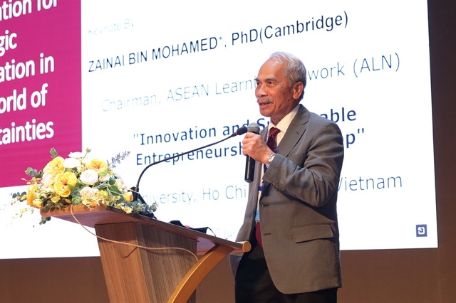Prof. Dr. Dato Zainal, Chairman of ASEAN Learning Network speaks at a workshop on “Innovation and Sustainable Entrepreneurship” that opened on Wednesday in HCM City. Photo courtesy of UEH