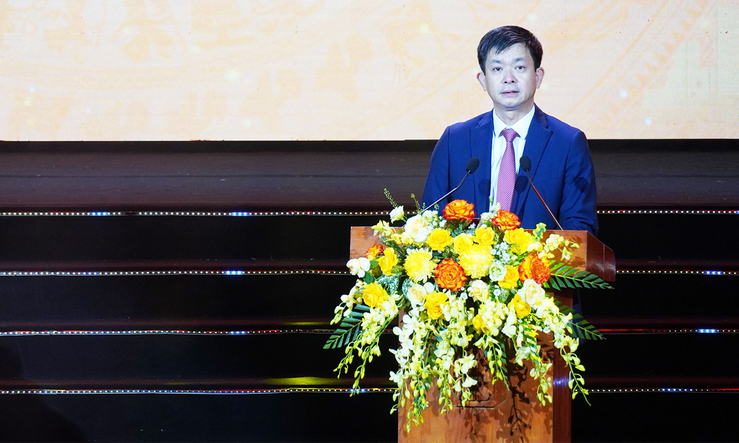 Bí thư Tỉnh uỷ, Trưởng đoàn Đại biểu Quốc hội tỉnh Quảng Trị Lê Quang Tùng phát biểu tại buổi lễ
