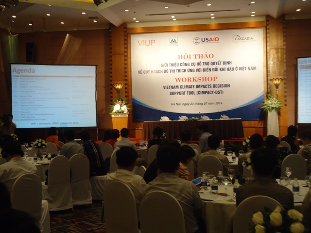 Ngày 24/7/2014, tại Hà Nội, công ty tư vấn Cascadia đại diện cho Tổ chức Phát triển Quốc tế Hoa Kỳ (USAID) phối hợp với Viện Quy hoạch Môi trường, Hạ tầng kỹ thuật đô thị & nông thôn (IRURE) thuộc Viện Quy hoạch đô thị & nông thôn Quốc gia (VIUP) tổ chức Hội thảo giới thiệu Bộ công cụ hỗ trợ ra quyết định tích hợp thông tin biến đổi khí hậu (BĐKH) tại Việt Nam (CIMPACT-DST). Hội thảo có sự tham gia của bà Chato Calderon - đại diện USAID, bà Andrea Martin - đại diện Cascadia; lãnh đạo VIUP và IRURE, cùng đông đảo đại diện các Sở ngành từ nhiều địa phương, các Hội nghề, các trường đại học và Viện nghiên cứu, các tổ chức trong và ngoài nước quan tâm tới lĩnh vực quy hoạch đô thị và BĐKH tham gia.