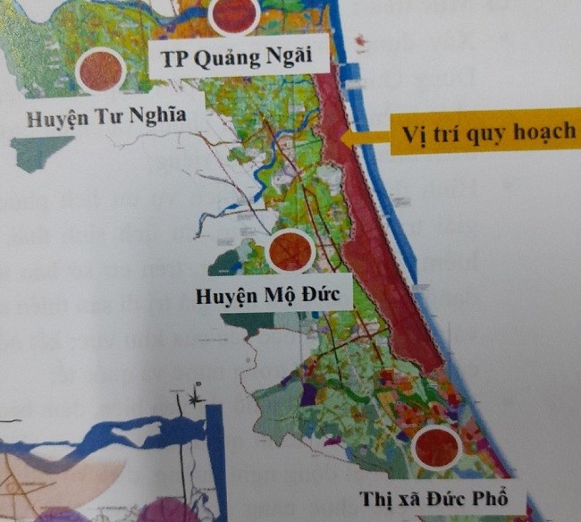 Theo báo cáo của Sở Xây dựng và đơn vị tư vấn, vị trí nghiên cứu quy hoạch dọc tuyến đường ven biển Dung Quất - Sa Huỳnh, có diện tích khoảng 7.700 ha, trong đó diện tích quy hoạch khoảng 6.875 ha, thuộc một phần ranh giới hành chính của xã Nghĩa Hoà (huyện Tư Nghĩa); các xã: Đức Lợi, Đức Thắng, Đức Chánh, Đức Minh, Đức Phong (huyện Mộ Đức); xã Phổ An và phường Phổ Quang (thị xã Đức Phổ), với tính chất quy hoạch được xác định là “Du lịch - dịch vụ - đô thị”.