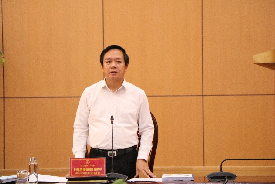 Đồng chí Phạm Quang Ngọc, Chủ tịch UBND tỉnh phát biểu tại Hội nghị