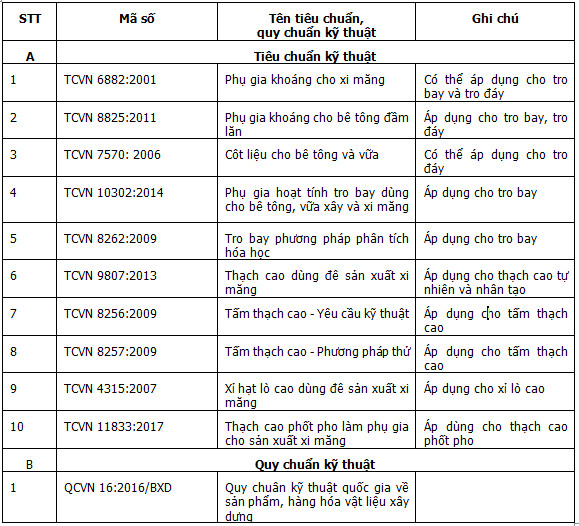Nguồn: Công văn 17/BXD-VLXD.